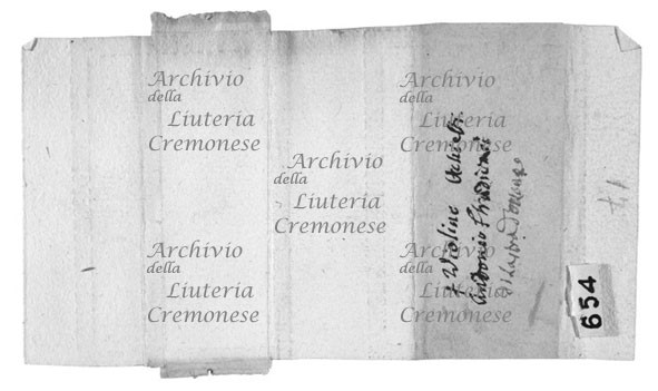 - '+ Violino Occhietti / Antonio Stradivari / di lastra d'ottone' (autografo di Cozio di Salabue)