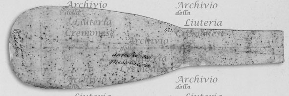- (dritto) Ant.° Stradivari / Mandolino Coristo (sotto) Quest'è la forma del / Mandolino Coristo