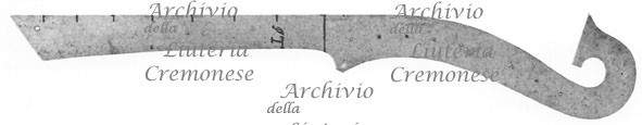 Sul cavigliere ha segnata la centratura dei fori dei piroli e due misure a compasso. Sul rovescio sono indicate le posizioni dei tasti.