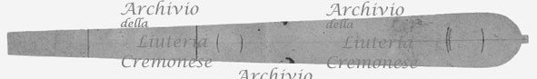 E' completo di tavola armonica, bottone e manico, e presenta tre misure tracciate a compasso.