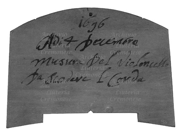 • (dritto) 1696, adi 4 dicembre / Musura Del violoncello / Da Scodere l' Corda