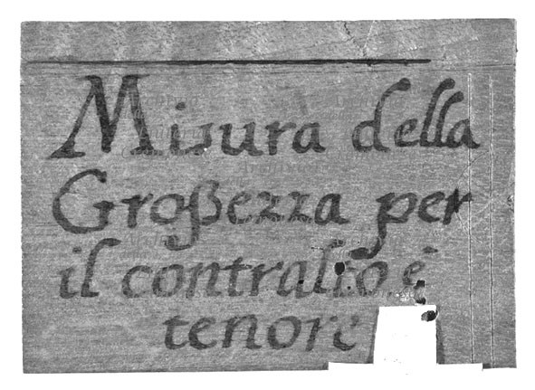- 'Misura della / Grossezza per / il contralto é / tenore' (probabile autografo di Francesco Stradivari)