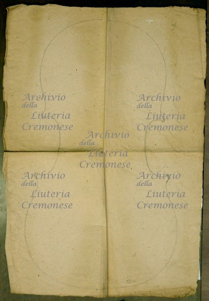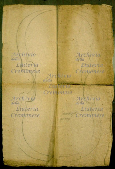 Sul dritto del foglio di carta è tracciato il profilo del corpo d'un violoncello Stradivari; sul rovescio due profili di violoncello Guarneri, uno al rovescio sull'altro.
