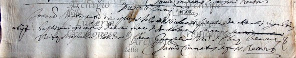- Registrazione del battesimo di Gian Battista Amati, figlio di Nicolò e Laura Lazzarini, nato nello stesso giorno
