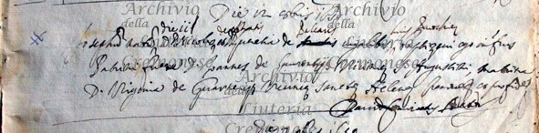 Josephus natus die 11 D.D. Nicolao de Amatis, et D.D. Lucretia de Palearis iugalibus huius Parochiae, baptizavi ego inf.tus. Patrini fuere D. Ioannes de Guazonijs Viciniae S. Augustini; Matrina D. Virginia de Guarnerijs Viciniae Sanctae Helenae Cremonae. Et pro fides D... Cominetus Rector