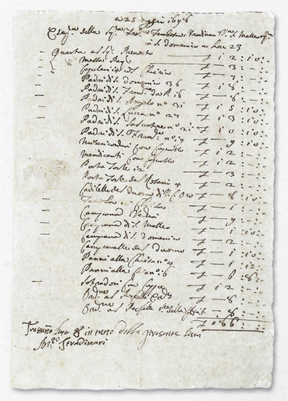 1698 - Lista delle spese per il funerale di Francesca Ferraboschi