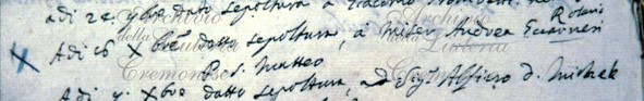 - Registrazione della sepoltura di Andrea Guarneri nella Cappella del Rosario della chiesa conventuale domenicana di S. Domenico