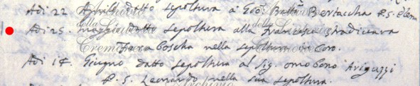 a[nno] d[omin]i 25 Maggio 1698 dato sepoltura alla Francesca Stradivara Ferabosca, nella sepoltura in coro