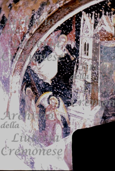 Organo portativo, appresentato con mobile di stile gotico, con la tastiera davanti e il mantice dietro, e la tripla fila di 10 canne metalliche infilate fra due supporti a torre.