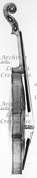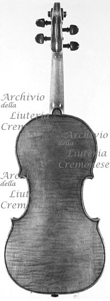 Fondo in un pezzo d'acero riccio a taglio tangenziale e marezzatura orizzontale discontinua. La fascia destra superiore è di rimpiazzo. Testa non originale, di Charles Beare.