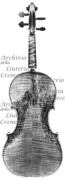 Fondo in due pezzi d'acero riccio a marezzatura media, incollati a spina di pesce con apice in alto.