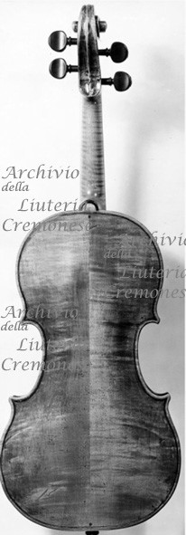 Fondo in due pezzi d'acero riccio a marezzatura discontinua, incollati a leggera spina di pesce con vertice in alto.