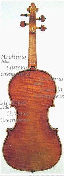 Fondo in un pezzo d'acero riccio a marezzatura media-larga discontinua discendente verso destra.