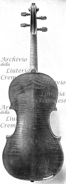 Fondo in due pezzi d'acero riccio a marezzatura media, a spina di pesce in alto e orizzontale nel resto.