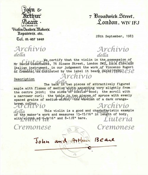 - Passato da Tarisio Auction, New York, Novembre 2017