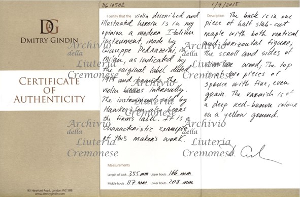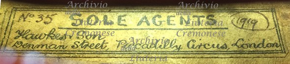 - 1) Giuseppe Pedrazzini, cremonese, fece in Milano l'anno 1919; 2) N° 35 Sole Agent, Hawkes & Sons Berman Street, Piccadilli Circus, London