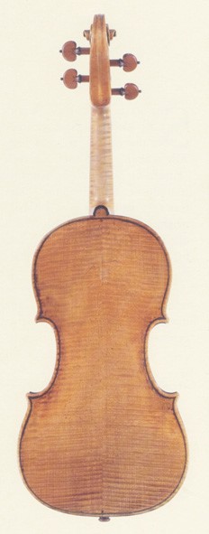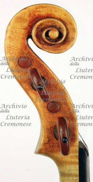 Fondo in due pezzi d'acero riccio a marezzatura fine, incollati a spina di pesce con apice in alto. Testa d'acero liscio.