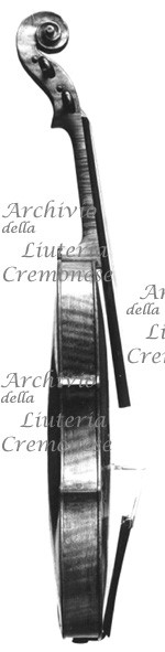 Fondo in un pezzo d'acero riccio a marezzatura media discendente verso destra. Testa non originale, probabilmente di una viola piccola di Lorenzo Storioni.