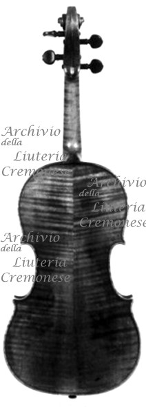 Fondo in due pezzi d'acero riccio a marezzatura media, incollati a spina di esce con apice in basso. Vernice rossa-arancio.