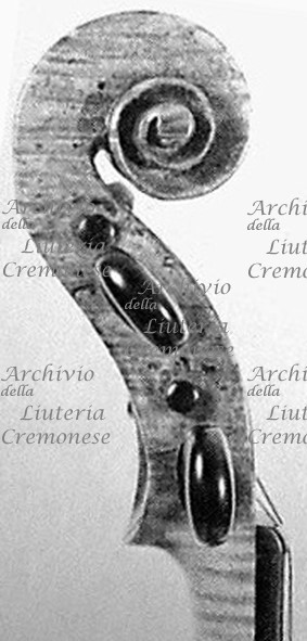 Tavola armonica d'abete a vena da fine a larga. Fondo in due pezzi d'acero riccio a marezzatura media, incollati a spina di pesce con apice in basso. Fasce di legno simile a quello del fondo. Testa d'acero riccio a marezzatura stretta. Vernice bruna-dorata.
