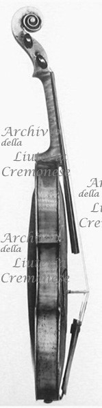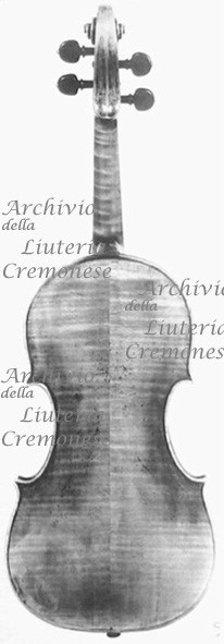 Fondo in due pezzi d'acero riccio a marezzatura media, incollati a leggera spina di pesce con vertice in alto.