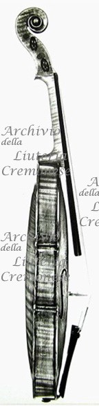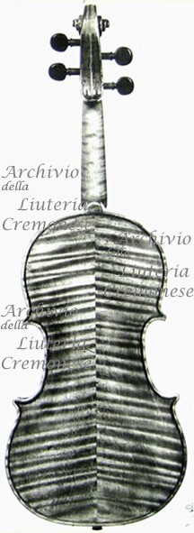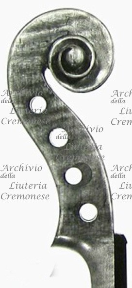 Fondo in due pezzi d'acero riccio a marezzatura media, incollati a spina di pesce con apice in alto.