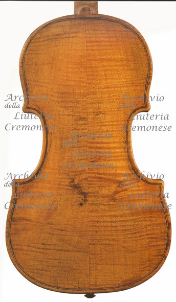 Fondo in due pezzi d'acero riccio a marezzatura media discontinua, prevalentemente orizzontale.