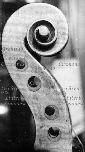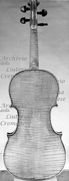Fondo in due pezzi d'acero riccio a marezzatura media, incollati a spina di pesce con vertice in basso.