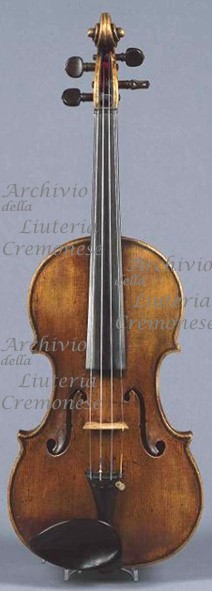 Tavola armonica d'abete a vena media. Fondo in due pezzi d'acero riccio a marezzatura stretta, incollati a spina di pesce con vertice in basso. Fasce di legno simile a quello del fondo. Vernice trasparente di colore ambrato marrone-dorato.