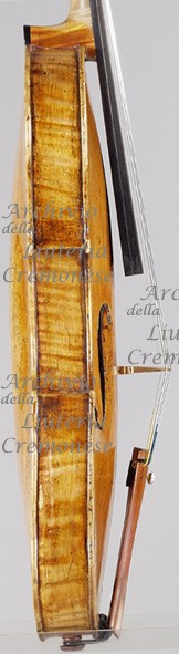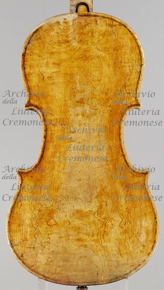 Fondo in un pezzo d'acero riccio a taglio tangenziale e marezzatura molto tenue ondulata quasi orizzontale.