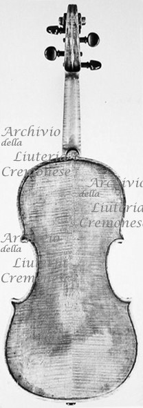 Fondo in due pezzi d'acero riccio a marezzatura stretta, incollati a leggera spina di pesce con apice in alto.