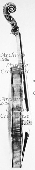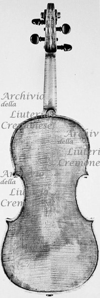 Fondo in due pezzi d'acero riccio a marezzatura stretta, quasi orizzontale a destra e discendente verso il bordo a sinistra.