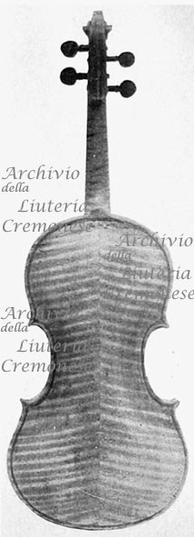 Fondo in due pezzi d'acero riccio a marezzatura larga, incollati a spina di pesce con apice in alto.
