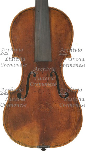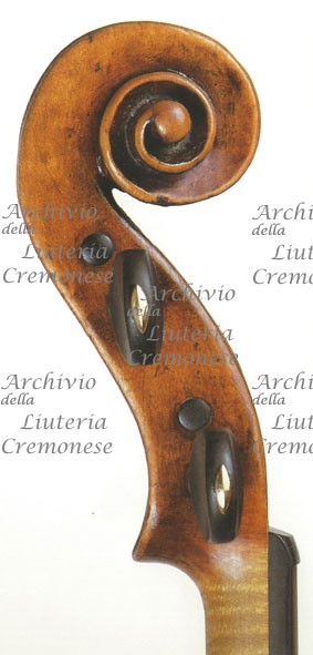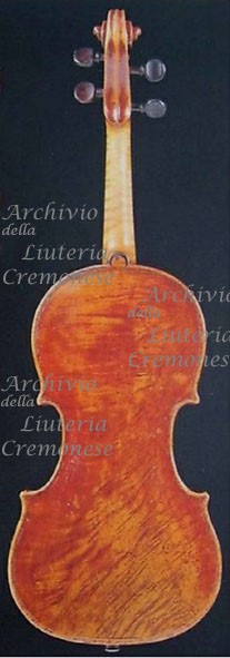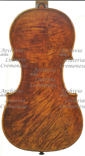 Fondo in un pezzo d'acero riccio a marezzatura irregolare discentente verso sinistra. Vernice rossa-bruna.