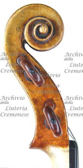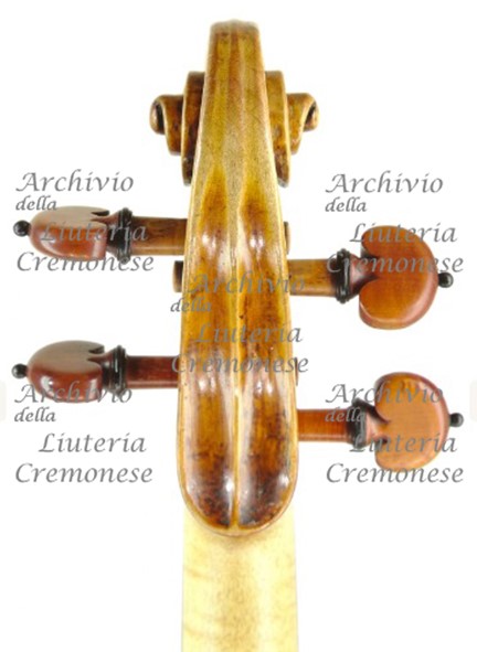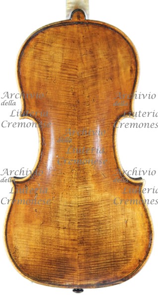 Fondo in un pezzo d'acero riccio a marezzatura stretta, incollati a spina di pesce con apice in basso.