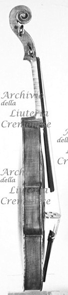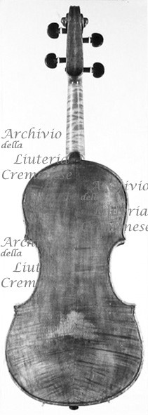 Fondo in due pezzi d'acero riccio a marezzatura stretta irregolare, orizzontale in alto e, in basso, a spina di pesce con apice in alto.