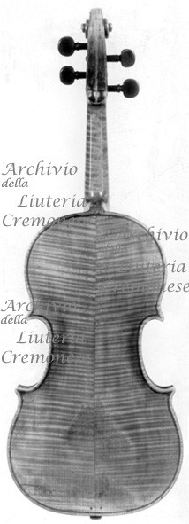 Fondo in due pezzi d'acero riccio a marezzatura media, incollati a pina di pesce con apice in basso. Vernice dorata.