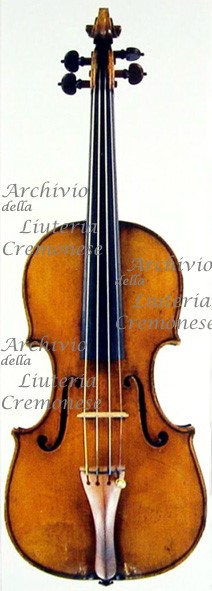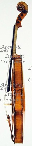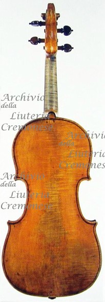 Tavola armonica d'abete a vena media irregolare. Fondo in un pezzo d'acero riccio a debole marezzatura media incompleta orizzontale. Fasce d'acero riccio a marezzatura stretta. Testa d'acero liscio. Vernice arancio-ambrata chiara.