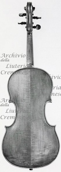 Fondo in due pezzi d'acero riccio a tenue marezzatura fine discontinua, incollati a leggera spina di pesce con apice in basso.