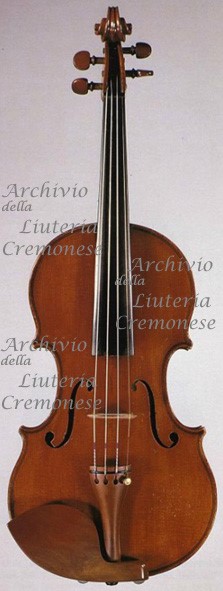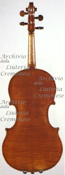 Marchiato all'interno. Fondo in due pezzi d'acero riccio a marezzatura stretta, incollati a leggerissima spina di pesce con apice in alto.