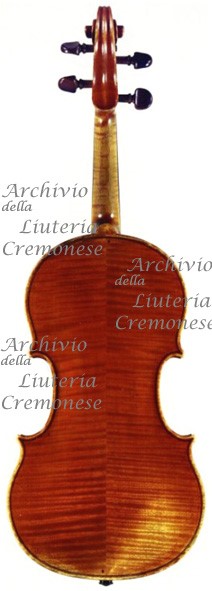Fondo in due pezzi d'acero riccio a marezzatura media, incollati a spina di pesce con apice in alto, marchiato all'interno.