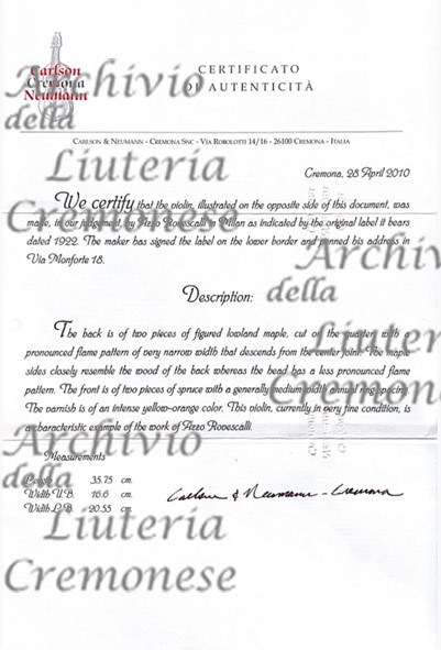 - Passato da Tarisio Auction's, Londra, Marzo 2023