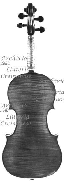 Marchiato all'interno. Fondo in due pezzi d'acero riccio a marezzatura media-fine, incollati a leggera spina di pesce con apice in alto.