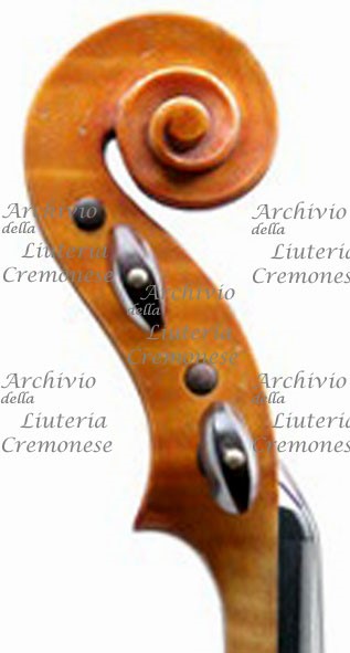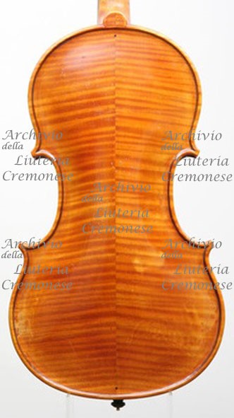 Fondo in due pezzi d'acero riccio a marezzatura media, incollati a spina di pesce con vertice in alto.