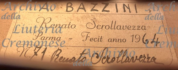 - "A. BAZZINI". Renato Scrollavezza, Parma, fecit anno 1964, n. 64 (firmata)