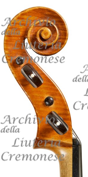 Fondo in due pezzi d'acero riccio a marezzatura fine, incollati a spina di pesce con apice in alto.