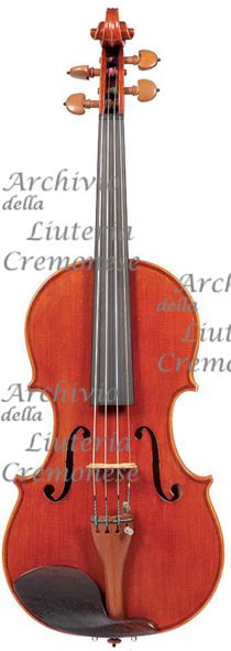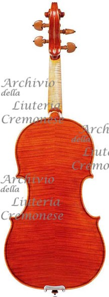 Fondo in due pezzi d'acero riccio a marezzatura stretta, incollati a spina di pesce con vertice in alto.