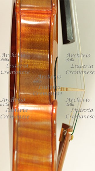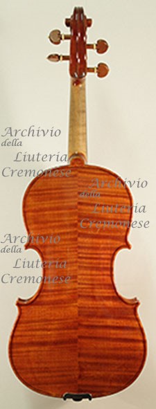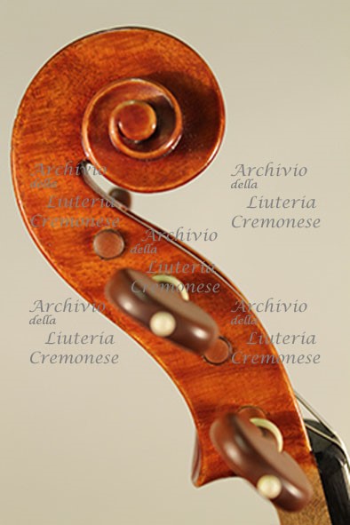 Fondo in due pezzi d'acero riccio a marezzatura media-larga, incollati a spina di pesce con vertice in alto.