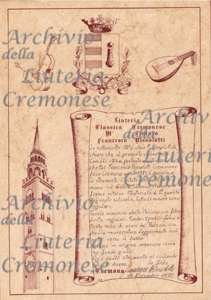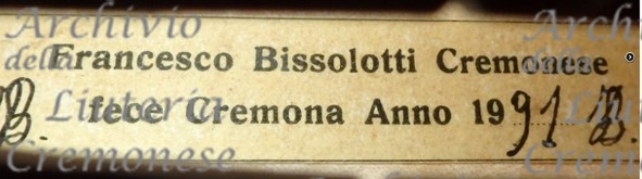 - Francesco Bissolotti Cremonese / fece Cremona Anno 1991 (siglata)