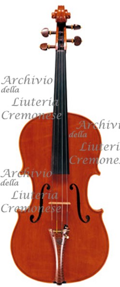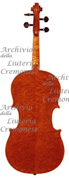 Costruita su modello di Gasparo da Salò del 1590 c., ha il fondo in due pezzi d'acero occhiolinato.